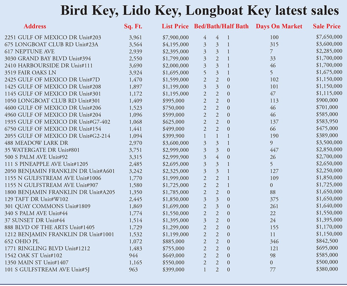 Bird Key, Lido Key, Longboat Key sales week ending April 3, 2026 Previous articleLongboat Key News April 3, 2026 edition flipbookNext articleKey Fire Dept. Reports 18% Drop in Calls Following 2024 Storms LEAVE A REPLY Cancel reply Comment: Please enter your comment! Name:* Please enter your name here Email:* You have entered an incorrect email address! Please enter your email address here Website: Save my name, email, and website in this browser for the next time I comment. Δ FacebookXPinterestWhatsApp Popular Key Fire Dept. Reports 18% Drop in Calls Following 2024 Storms Longboat Key News April 3, 2026 edition flipbook The Second Set Letdown: Why Winning Early Can Cost You the Match (and How to Fix It) Longboat Key & Sarasota Letters to the Editor week of April 4, 2026 How to Survive a Dry Lent Read our Latest... Key Fire Dept. Reports 18% Drop in Calls Following 2024 Storms lbknews - April 6, 2026 —The Longboat Key Fire Rescue Department responded to fewer... Longboat Key News April 3, 2026 edition flipbook lbknews - April 6, 2026 The Second Set Letdown: Why Winning Early Can Cost You the Match (and How to Fix It) lbknews - April 6, 2026 —Picture this: You and your doubles partner are absolutely... Longboat Key & Sarasota Letters to the Editor week of April 4, 2026 lbknews - April 6, 2026 Longboat Pass Bridge Replacement To: Longboat Key Commissioner Sarah Karon Agreed....