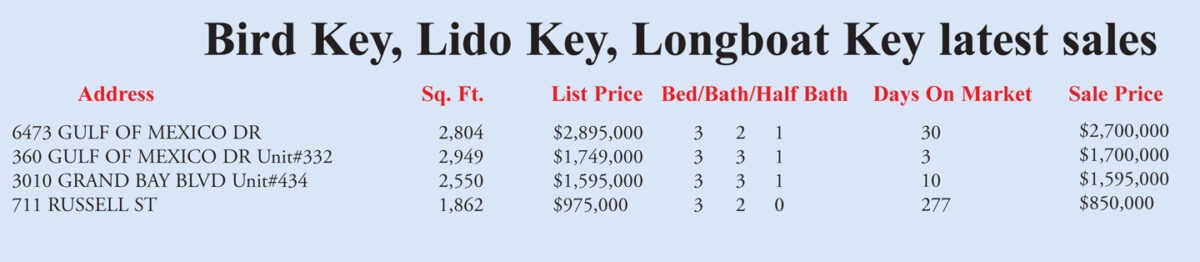 Real Estate Bird Key, Lido Key, Longboat Key sales week ending January 30, 2026 By lbknews - February 5, 2026 0 FacebookTwitterPinterestWhatsApp