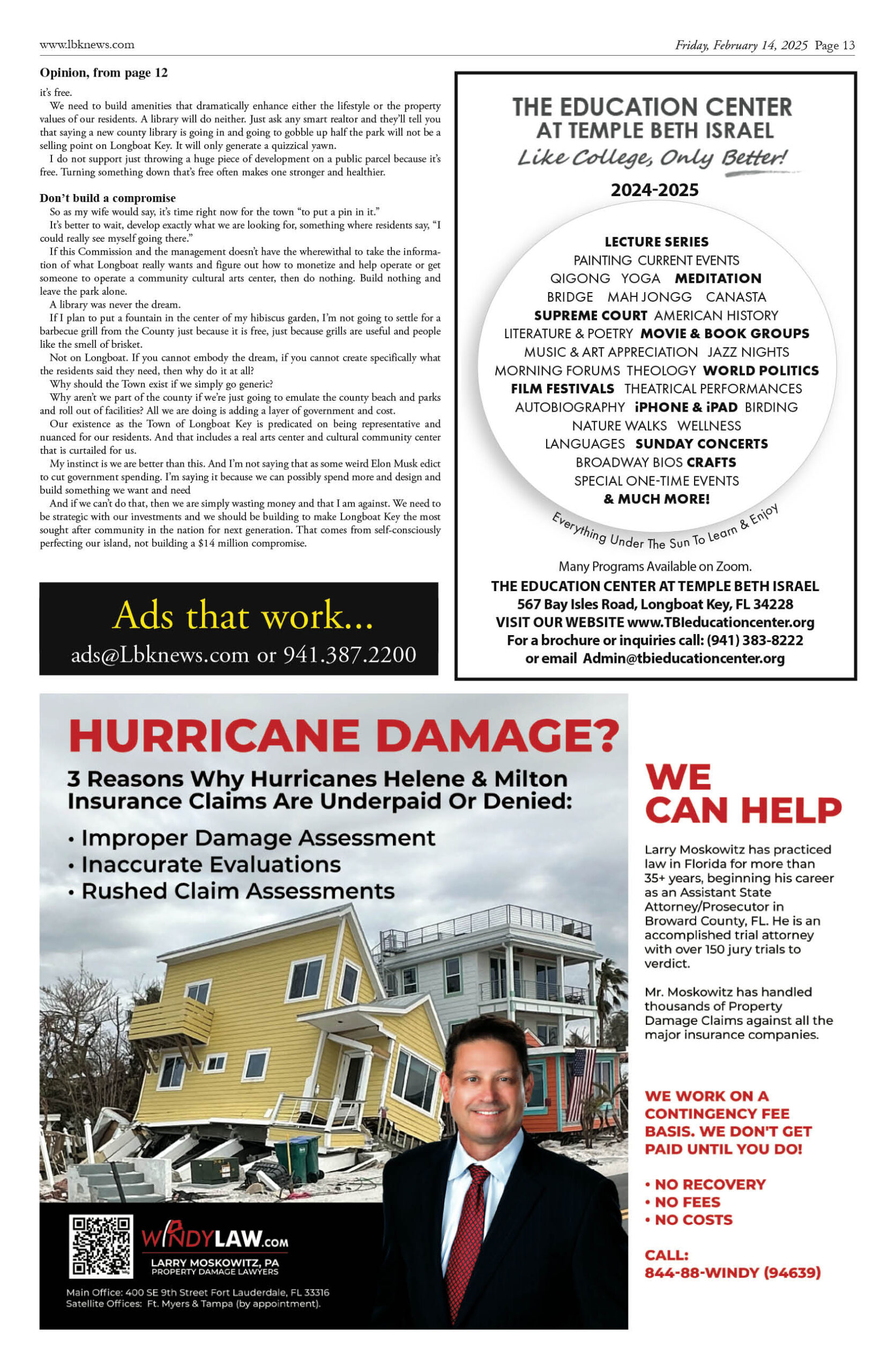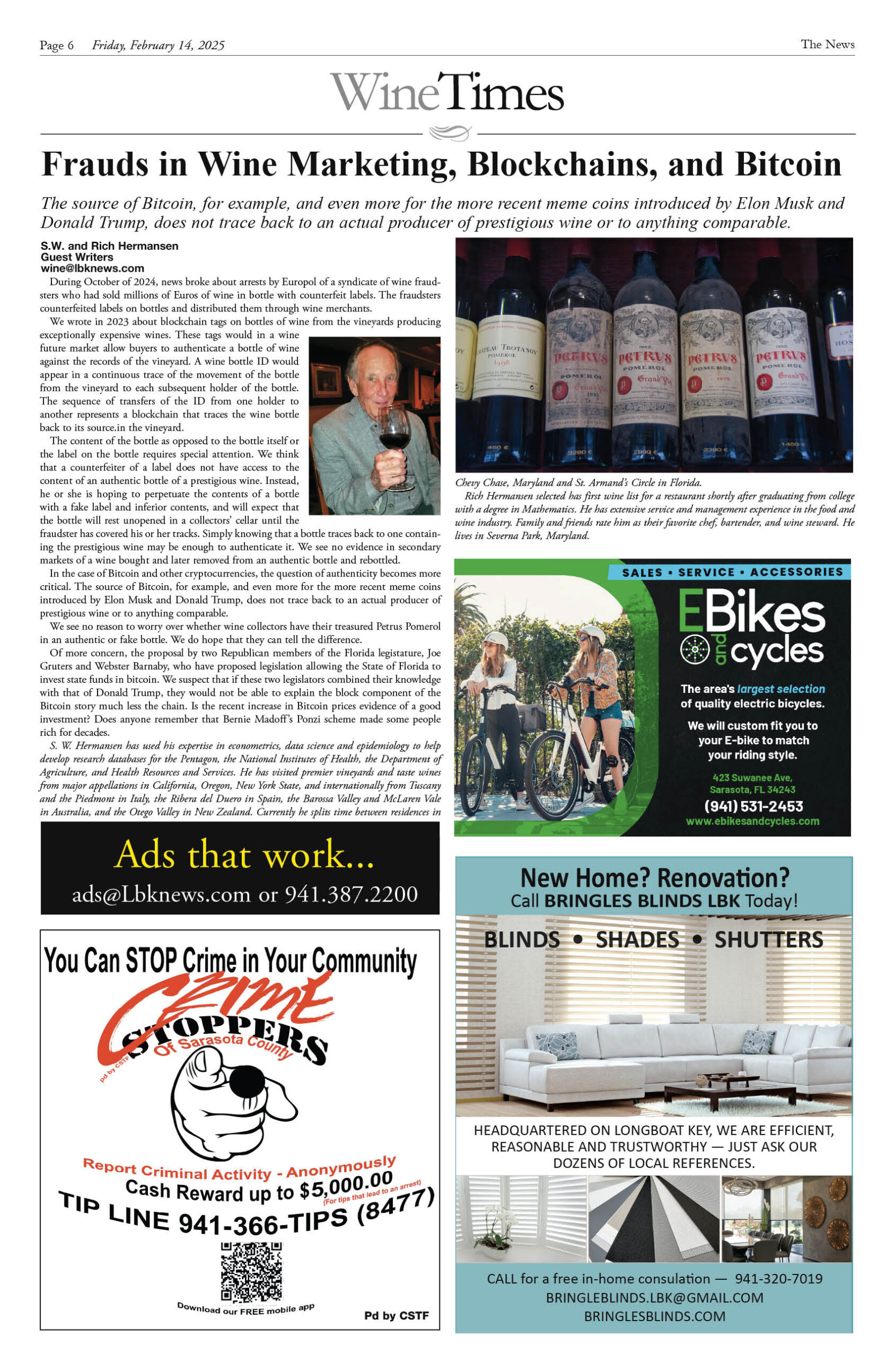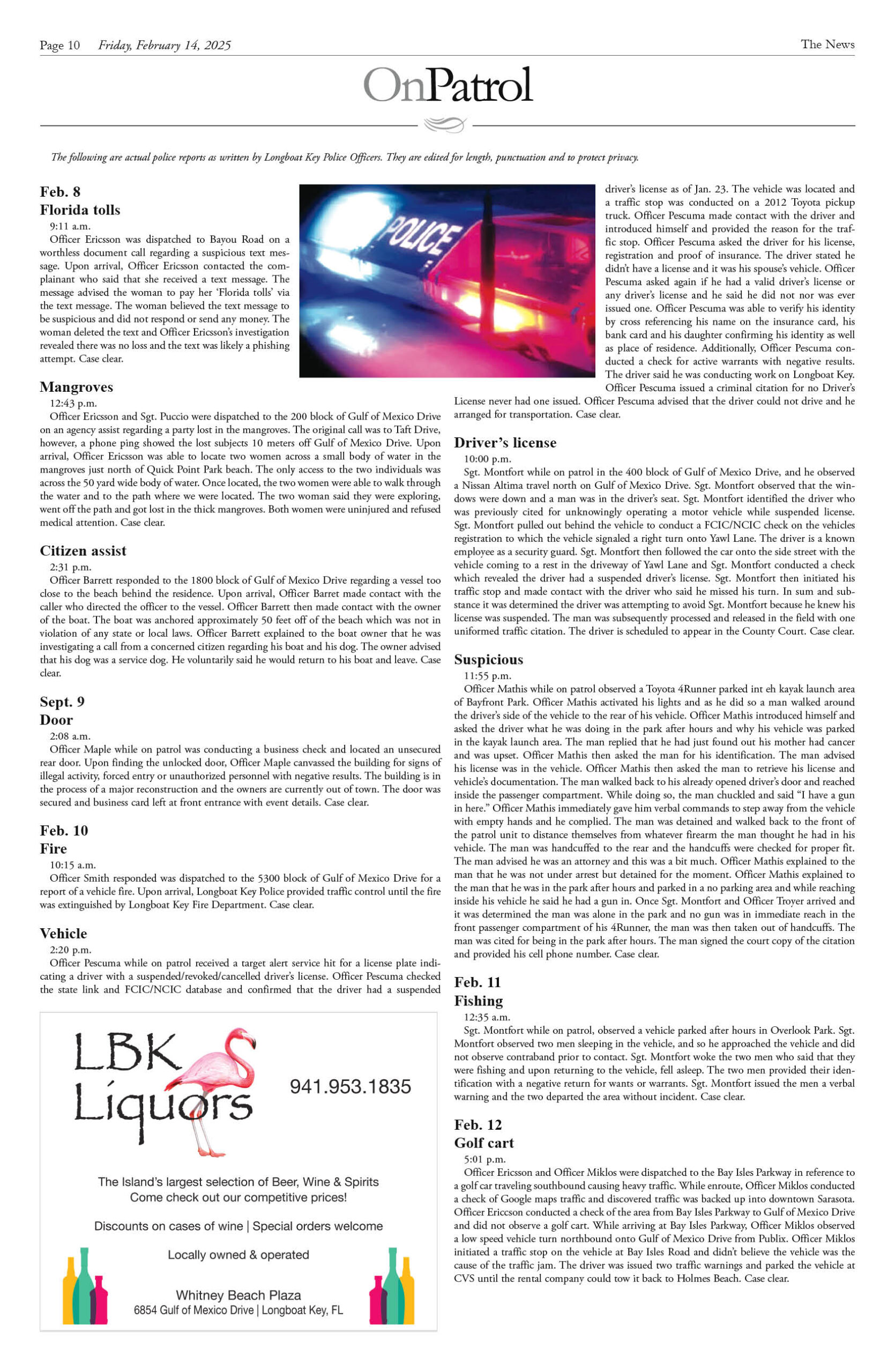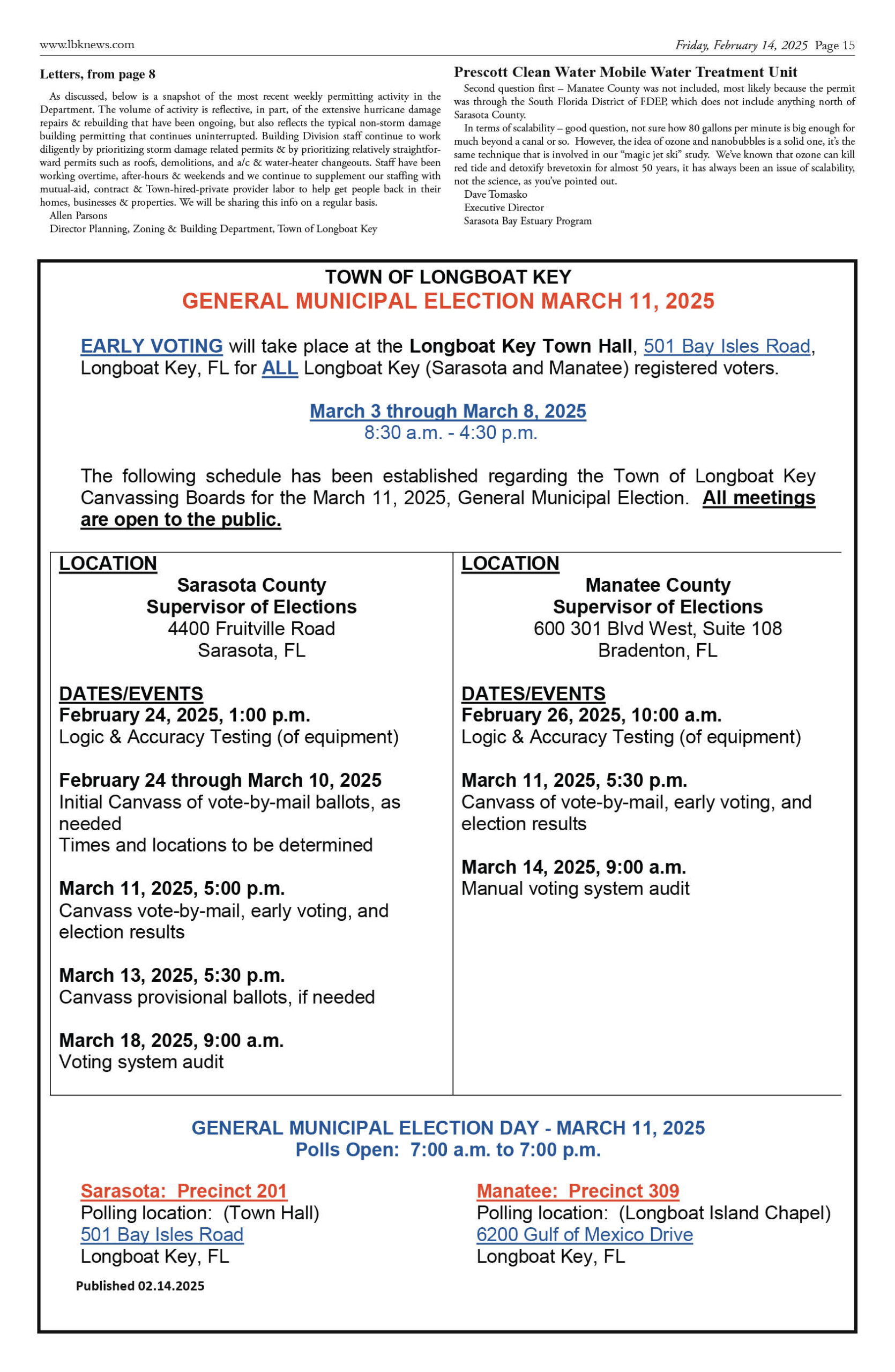 February 14 Print Newspaper e-edition Previous articleOn Patrol Longboat Key Police reports week of February 14, 2025Next articleLongboat Key & Sarasota Letters to the Editor week of February 14, 2025 LEAVE A REPLY Cancel reply Comment: Please enter your comment! Name:* Please enter your name here Email:* You have entered an incorrect email address! Please enter your email address here Website: Save my name, email, and website in this browser for the next time I comment. Δ FacebookTwitterPinterestWhatsApp Popular Sarasota and Longboat Execute ‘Luxury Reset’ and Challenge Naples Dominance for 2026 End of the “Purple War”? Van Wezel Heirs Back New $300M+ Performing Arts Center as Project Pivots Stick Figure Drummer Kevin Offitzer to host Meet-and-Greet at Cirque St. Armands Why the 2026 Australian Open Belongs to the New Ruling Class Infrastructure Upgrades Begin on St. Armands Artery Despite Concerns Read our Latest... Sarasota and Longboat Execute ‘Luxury Reset’ and Challenge Naples Dominance for 2026 lbknews - January 11, 2026 STEVE REID Editor & Publisher sreid@lbknews.com As the first cold fronts of... End of the “Purple War”? Van Wezel Heirs Back New $300M+ Performing Arts Center as Project Pivots lbknews - January 11, 2026 The ambitious, often contentious effort to build a world-class... Stick Figure Drummer Kevin Offitzer to host Meet-and-Greet at Cirque St. Armands lbknews - January 11, 2026 STEVE REID Editor & Publisher sreid@lbknews.com For fans of American reggae, the... Why the 2026 Australian Open Belongs to the New Ruling Class lbknews - January 11, 2026 STEVE REID Editor & Publisher sreid@lbknews.com The air in Melbourne tastes like...