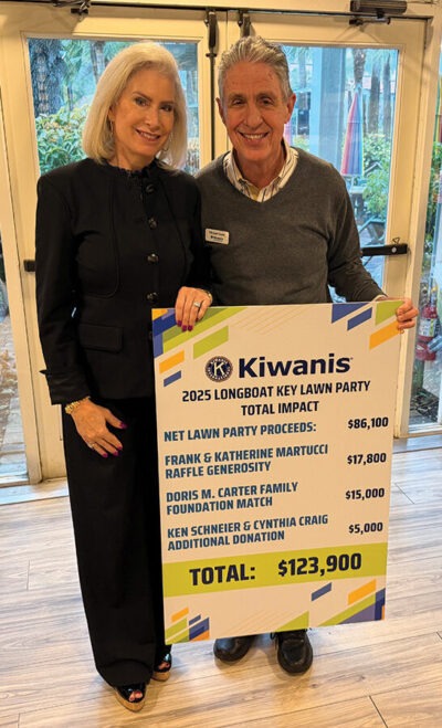 “It was a pleasure working with Michael Garey and the entire Kiwanis Club of Longboat Key team to make December’s Lawn Party such a success,” said Danielle Gladding, President of the Kiwanis Club of Longboat Key. “As chair of the event, Michael deserves the main credit—he led with incredible dedication and energy. At the same time, it was truly a team effort from the whole Kiwanis Club that made this the amazing success it was.”