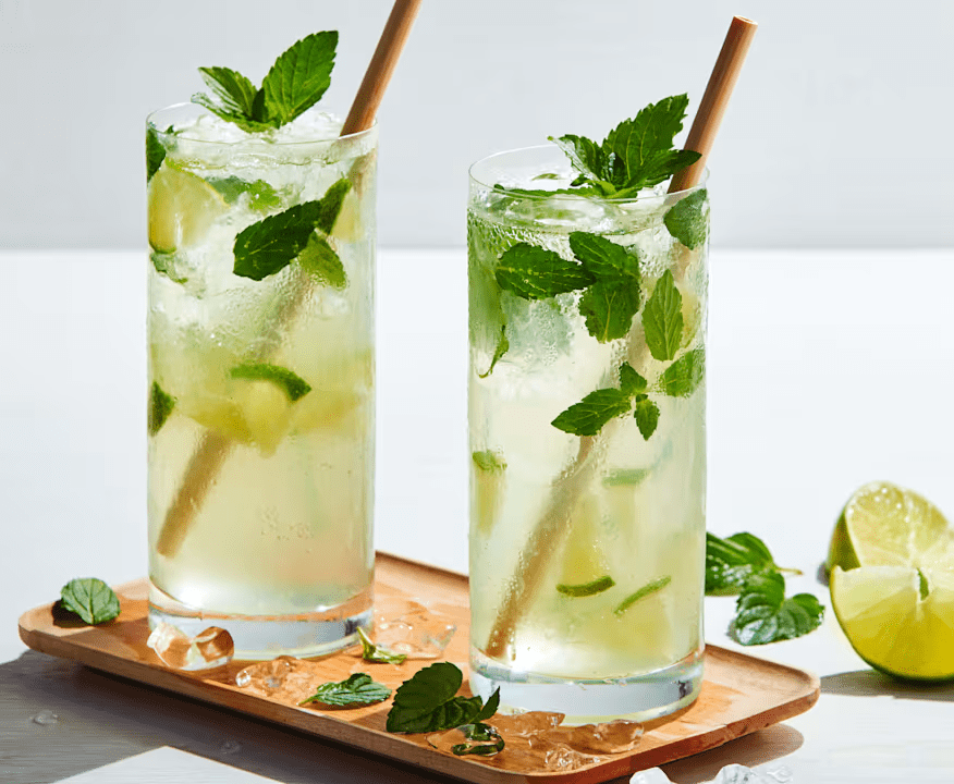 The flagship Columbia Restaurant in the middle of the Circle has served its Mojito since it opened as an offshoot of the original Cuban-Spanish location in the Ybor City area of Tampa Florida. A generous pour of light rum in fresh lime juice with mint simple syrup and seltzer water fill a tall glass. The interesting garnish has fresh mint leaves muddled in the bottom of the glass. A stirrer cut from the pulp of a sugarcane stalk serves as muddler inside the glass and, when chewed on one end, adds a few drops of raw sugarcane syrup to mint-infused lime. This simple, signature cocktail rivals form fits function design of Daiquiris from the venerable Phone Bar in the Hotel Geneva in Mexico City; two servings of the golden rum Daiquiris arrive at the table in a shaker filled with ice. The guests may then linger over Daiquiris that will stay cold for an hour or more.